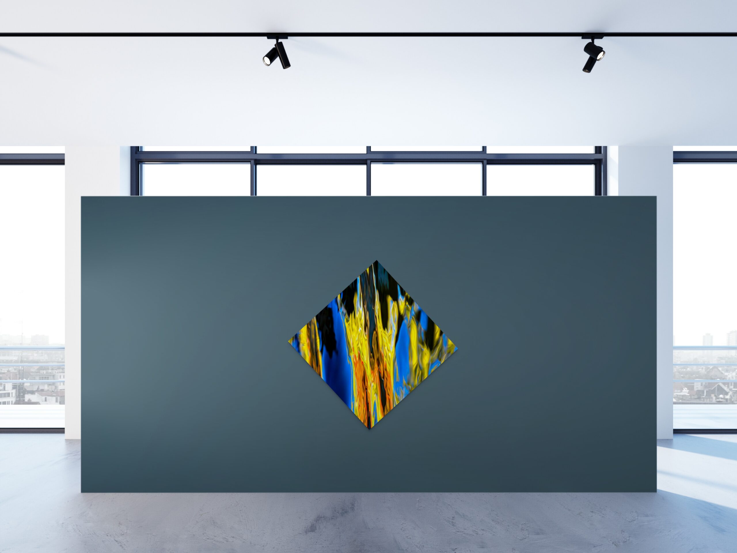 The diamond crop showcases the versatility of displaying artwork from various angles. Step into this autumnal landscape with me. Picture yourself standing in a gently flowing river, feeling the water caress your legs. Observing the salmon leaping over rocks, navigating their journey to lay eggs. It’s essential to tread carefully during this critical time to avoid disrupting their path. With each step in the crisp fall air, you become attuned to the delicate balance of nature and your role within it.
