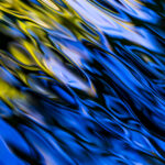 In this close-up, the vivid colors of fall are striking, resembling blue flames dancing on the water’s surface. The bright yellow hues are reflected from nearby bushes in full autumnal splendor. These vibrant colors are exclusive to autumn, signifying the changing of the leaves.