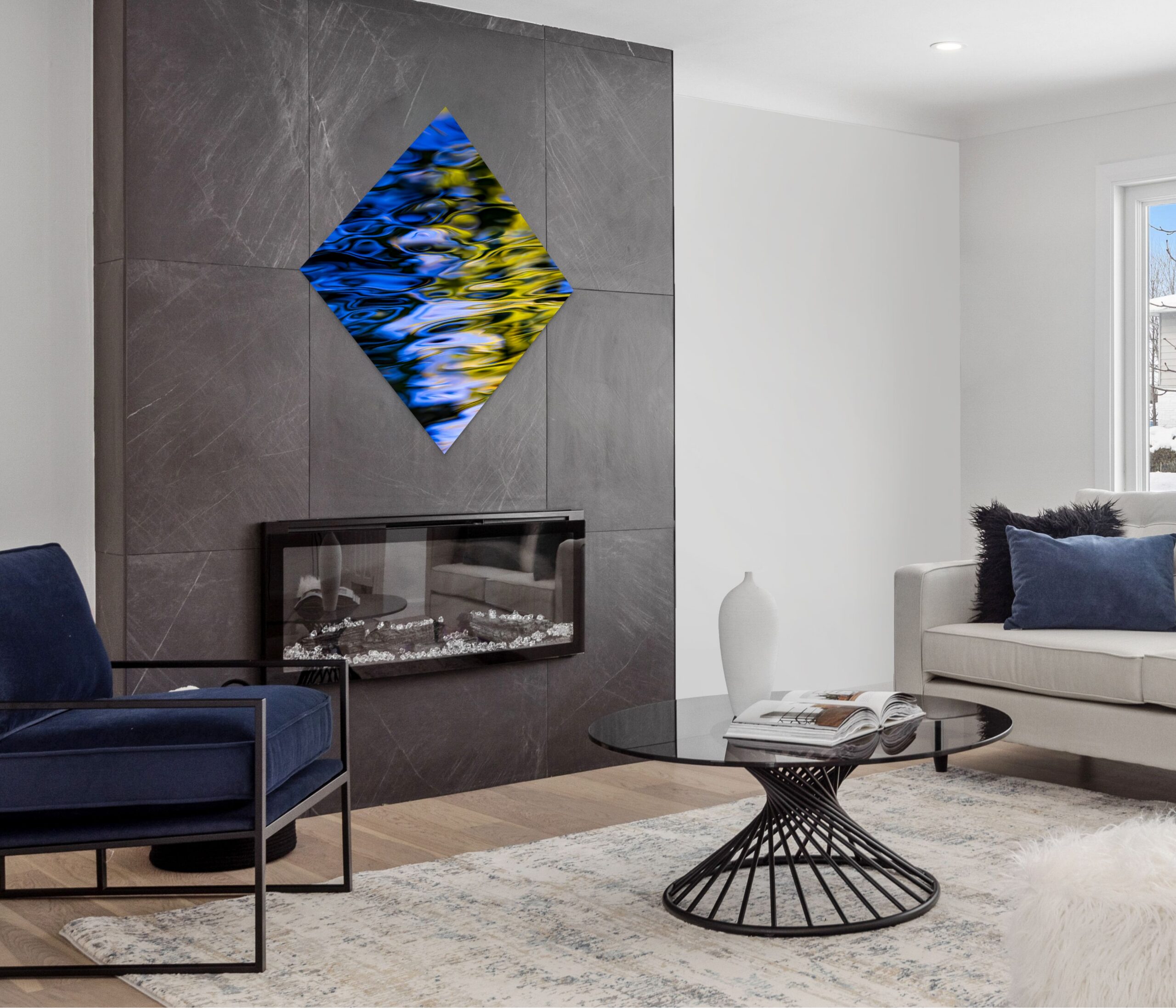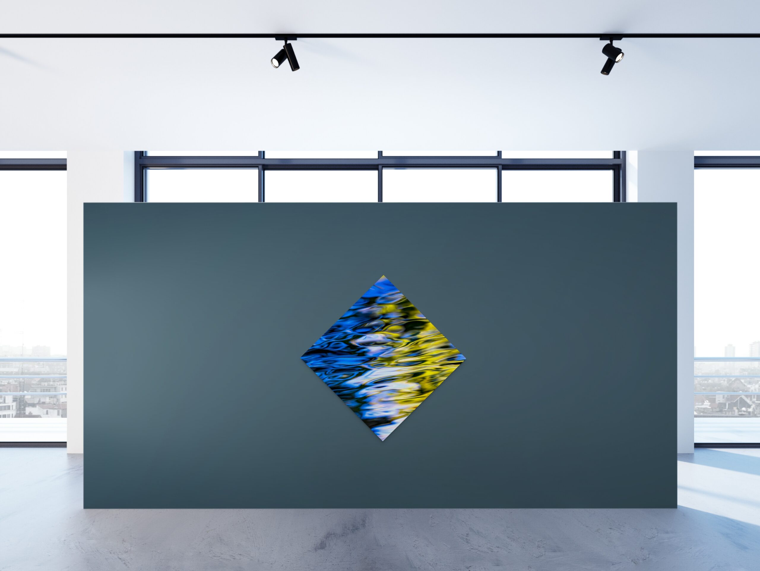 The diamond crop showcases the versatility of displaying artwork from various angles. Step into this autumnal landscape with me. Picture yourself standing in a gently flowing river, feeling the water caress your legs. Observing the salmon leaping over rocks, navigating their journey to lay eggs. It’s essential to tread carefully during this critical time to avoid disrupting their path. With each step in the crisp fall air, you become attuned to the delicate balance of nature and your roll within it.